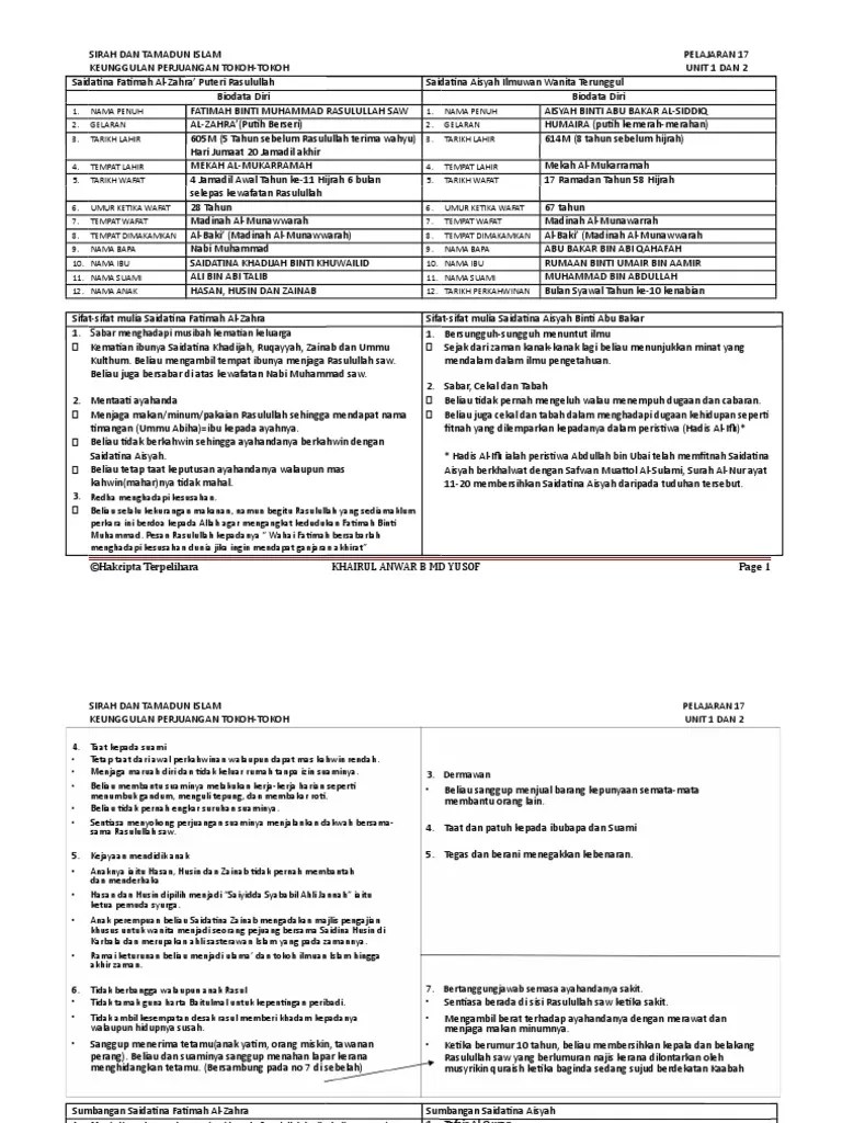 Bidang sirah muka surat 179. Biodata • fatimah binti muhd rasulullah s.a.w • 20 jamadilakhir ( 5 tahun sebelum rasulullah menerima. Biodata saidatina fatimah · tarikh lahir : Fatimah binti muhammad keturunan : Mari kita lihat biodata dan mengenali sifat keperibadian beliau.